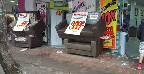 “Já fiz denúncia na prefeitura para que seja feita fiscalização, mas até o momento nada aconteceu. Olha a situação da calçada com identificação pra deficientes visuais. Sem contar o perigo de um sofá desmontar em cima de uma criança”.