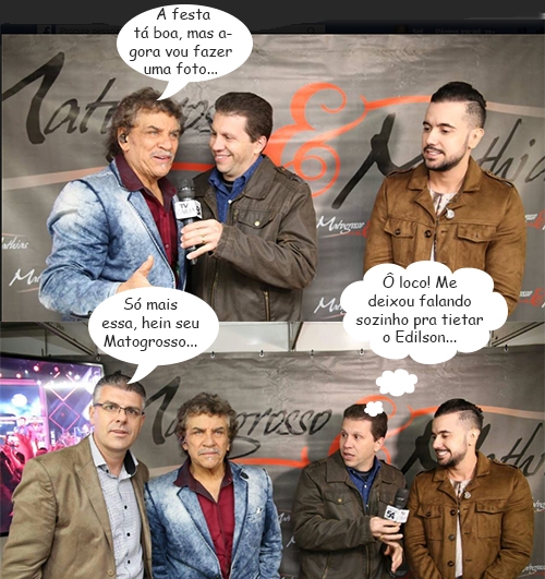 Os cliques são desta quinta-feira, quando a dupla Matogrosso & Mathias se apresentou na Festa do Carneiro no Buraco. Não faltou uma entrevistinha a Alessandro Gonçalves, do Canal 54. E o vereador Edilson Martins não perdeu a chance de uma tietagem básica.