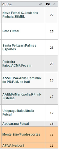 A ACMF está em quarto lugar, com 17 pontos, um a mais que o Apucarana, que está em sétimo, com 16.
