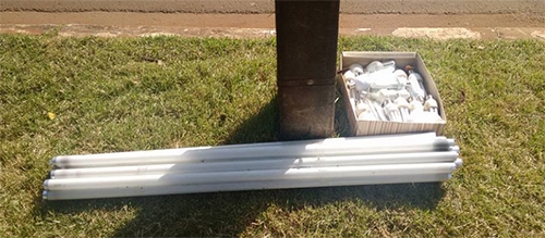 Como manda a tradição mourãoense, lugar de lâmpada fluorescente queimada é no canteiro central. Essas aí foram deixadas na av. Manoel Mendes de Camargo. E parece que até já criaram filhotinhos, não parece?...
