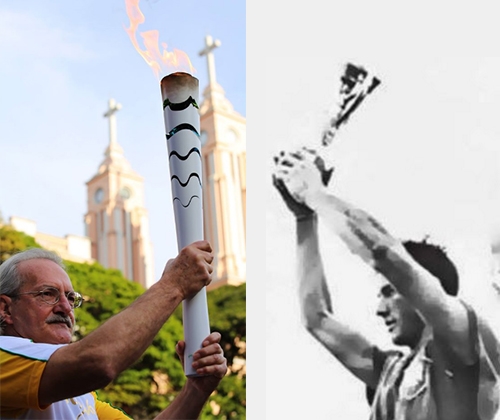 Foi o capitão brasileiro Bellini, na Copa de 1958 (Suécia), quem fez pela primeira vez o gesto de levantar a taça sobre a cabeça na hora de comemorar o título. Depois dele, todo mundo fez igual. Até o mourãoense Itamar Tagliari, na hora em que chegou com a tocha olímpica ao palco na praça São José, nesta quarta-feira.