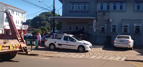 Nesta terça-feira pela manhã, veículo estaciona sobre a calçada, em frente à Central Hospitalar, na av. Manoel Mendes de Camargo.
