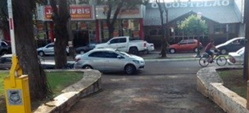 Na av. Manoel Mendes de Camargo, centro de Campo Mourão, carro estaciona na entrada do estacionamento da prefeitura.