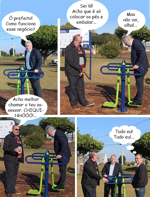 Os cliques são de Boa Esperança, onde o secretário de Estado Douglas Fabrício (Esporte e Turismo) foi conferir a academia ao ar livre instalada numa praça da cidade. O prefeito Cláudio Gotardo acompanhou, assim como o assessor de Douglas, Chiquinho Pequito.