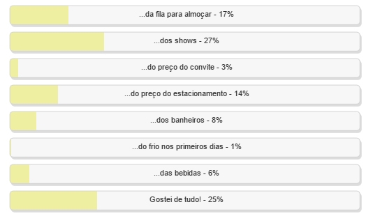 Enquete encerrada nesta segunda-feira deu vitória à alternativa “os shows”, com 27% dos votos.