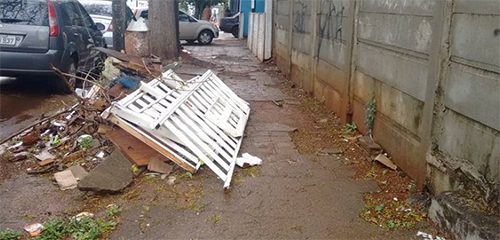 “Entulhos e pedaços de móveis ou sabe-se lá o quê deixam calçada da rua Araruna, na área central, quase sem passagem para o pedestre. Sem contar o quanto tiram da beleza da cidade”.