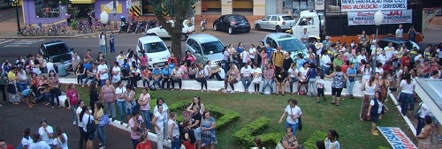 Se a prefeita Regina Dubay olhou pela janela de seu gabinete na tarde desta quinta-feira, foi isso que ela viu. Um grupo de servidores começou a chegar por lá depois das 15h e ficou até às 18h esperando uma definição sobre o reajuste salarial da categoria. Os servidores até que estavam bonzinhos e não fizeram coros contra Regina, não. Portanto, sem serenata...