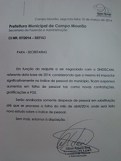 Estão suspensas, até segunda ordem, contratações na prefeitura de Campo Mourão.