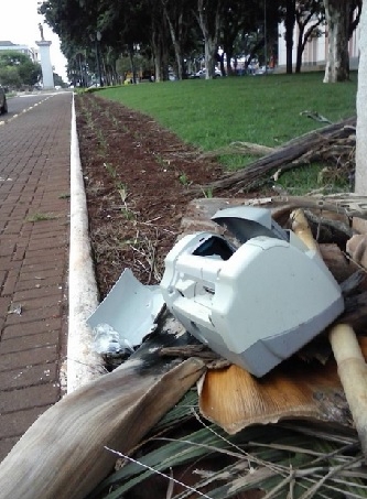 "Impressora de computador jogada na praça São José, no centro de Campo Mourão. Cada um tem que fazer a sua parte, ou será que é culpa da prefeita, como sempre?" Maurício