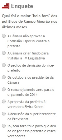 A nova enquete de Boca Santa quer saber qual foi a maior bola fora que os políticos de Campo Mourão deram nos últimos meses.