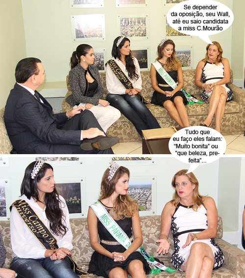 Os cliques são deste sábado, quando a prefeita Regina Dubay recebeu a visita da Miss Paraná 2013, Isis Stocco Machado. Ela estava acompanhada pela miss Campo Mourão, Alessandra Souza. Também participaram do encontro o presidente do Miss Paraná, Wall Barrionuevo, a secretária Sônia Singer (Cultura) e a coordenadora do Concurso Miss de Campo Mourão, Larissa José. A visita foi para anunciar que o Miss Campo Mourão 2014 será dia 10 de maio, no Celebra. E que fique claro: mulher feia não entra...