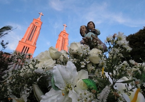 "Domingo à noite a paróquia São Francisco de Assis participou da novena na Catedral e tiramos esta foto na chegada para a celebração". Nívea