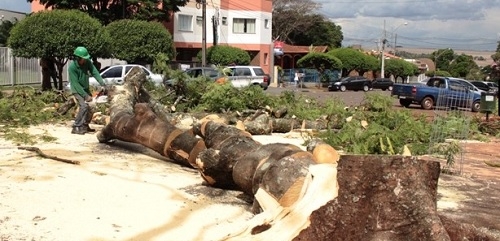 Um corte de árvore pública virou caso de polícia nesta terça-feira em Campo Mourão. Não pela árvore, mas pelo carro que foi atingido. O acidente aconteceu na rua Mato Grosso e irritou a dona do veículo. Agora a prefeitura terá que pagar o conserto do carro. Deve ser vingança das árvores, que estão cansadas de serem derrubadas pela cidade. E cá pra nós: será que precisava mesmo cortar a árvore desse jeito aí?...