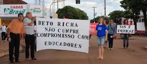 Professores e funcionários da rede estadual de ensino paralisaram as atividades nesta quarta-feira. Entre os pedidos, a aplicação dos 33% de hora-atividade na jornada do magistério. Em Campina da Lagoa teve passeata pelas ruas da cidade e apoio de professores da rede municipal. Uma carta com todas as reivindicações foi entregue na prefeitura.