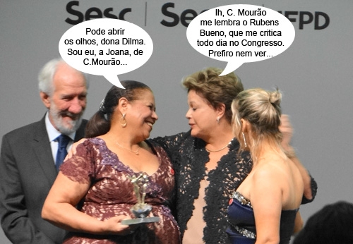Olha aí mais um clic (agora de pertinho), da empresária mourãoense Joana da Silva Souza sendo cumprimentada pela presidenta Dilma Rousseff. Foi segunda-feira, em Foz do Iguaçu, durante evento do Sistema Fecomércio em que Joana foi uma das homenageadas como prêmio Mulher Empreendedora Destaque. Além do troféu, ganhou o abraço da presidenta. Tá pensando o quê!...