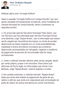 A afirmação foi feita em nota publicada no Facebook.
