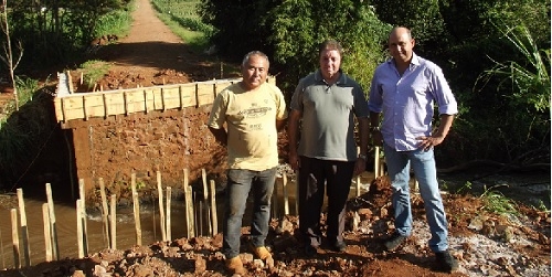 Quarto Centenário - O prefeito Reinaldo Krachinski foi dar uma olhada na construção da pnte do Vieira, no rio Barreiro, e o cascalhamento da estrada do Porto 3. Orçada em R$ 90 mil, a ponte está sendo construída com recursos próprios do município. Segundo Krachinski, "fruto da economia".
