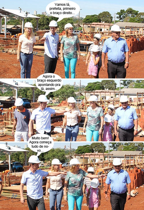 Olha aí mais cliques da visita da prefeita Regina Dubay às obras do conjunto Fortunato Piacentini, no jardim Cidade Nova. Os trabalhos começaram na semana passada, com 824 casas na primeira fase. A vereadora Nelita Piacentini acompanhou. Quem aparece apontando pra lá e cá é o diretor da empreiteira, Nilmar Piacetnini. Ah, pensa que é só a Nelita, da família, que faz coreografia essas coreografias, é?...