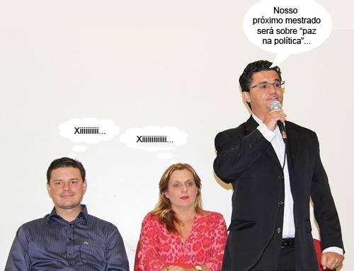 Olha aí mais um clic da aula inaugural do primeiro mestrado da Unespar/CM. O diretor do câmpus, Éder Stela, discursa ao lado da prefeita Regina Dubay e do presidente da Câmara, Pedrinho Nespolo. Isso foi na terça-feira pela manhã, quando o tal do vídeo do "Espáia Brasa" já estava rodando na Youtube. Ah, esses ossos do ofício...