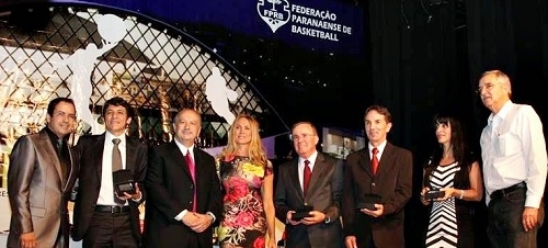 A estreia na semifinal da Liga Ouro será nesta quarta-feira, em Rio Claro/SP, mas Campo Mourão Basquete já andou recebendo prêmios por aí. A equipe mourãoense foi premiada na Noite de Gala do Basquete Paranaense, em Curitiba. O presidente da Amobasquete, Nelson Pedro Martins, recebeu pos prêmios da Amobasquete e do técnico Emerson de Souza e do atleta Michel. A Coamo também foi premiada pelo apoio ao esporte. O evento teve a presença da "rainha Hortência". Ah, quem pode, pode...