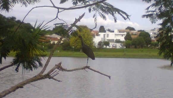 "Ave, embelezando o nosso bosque, lugar para caminhar e entrar em contato com a natureza".