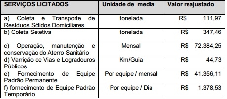 Com os novos valores, a empresa passa a receber R$ 111,97 por tonelada de lixo recolhida (veja tabela).