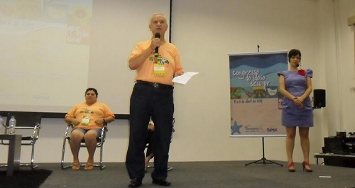 O clic é do Congresso Estadual do Idoso, realizado pelo Sesc em Caiobá. Quem está discursando é ele mesmo: o professor e ex-vereador Joani Teixeira, que fez parte da mesa-redonda “Vivências sobre atividades realizadas após aposentadoria”. "Aceite todos os convites de batizados, aniversários, formaturas, casamentos, etc. O importante é sair de casa", escreveu Joani no Facebook.