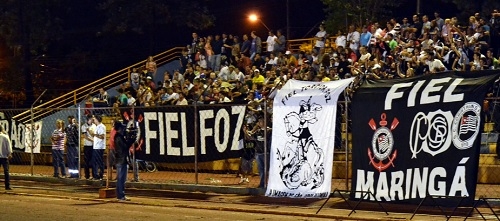 Um público como há muito tempo não se via foi ao estádio Roberto Brzezinski, no sábado à noite, pra ver o amistoso entre másters de Campo Mourão e do Corinthians. E não é que veio gente de longe? Corintianos de Maringá e até de Foz do Iguaçu apareceram no RB com faixas e tudo. Deram sorte, já que o time de Zenon e Tupãzinho venceu por 2 a 0. Vai, Curíntia!...