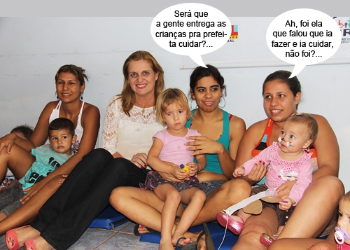 Para comemorar a Páscoa, a prefeitura está entregando ovos de chocolate e doces para crianças dos oito centros de integraçã. São mais de 800 cestas. A prefeita Regina Dubay participou de confraternizações com crianças durante a semana e até sentou no chão junto com a criançada. Ô dureza...