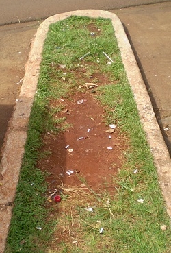 "Centro de nossa Campo Mourão. Este espaço, por exemplo, não aguenta o pisoteio de pessoas. Não custa nada a prefeitura colocar um pouco de pedrisco... Nossa cidade é linda, mas precisa de zelo". Fraterno Maria Nunes