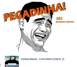 Um post no Facebook anuncia o vídeo "Espáia Brasa, o retorno", mas quem clica se depara numa "pegadinha".