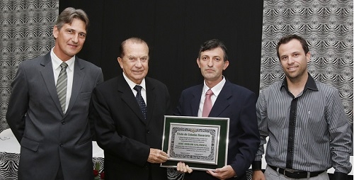 O presidente da Coamo, José Aroldo Gallassini, tem mais um título de Cidadão Honorário. Agora é o de Cândido de Abreu, o 38.o de sua carreira, que foi entregue nesta terça-feira. E vêm mais por aí, uma vez que já estão provados os títulos de Engenheiro Beltrão e Laguna Carapã/MS. E haja parede para tanto quadro...