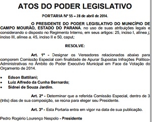 Ficaram na comissão os vereadores Edson Battilani, Luiz Alfredo e Sidnei Jardim.