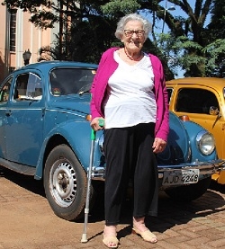 Entre os mais de 100 carros que participaram do 11.o Encontro Mourãoense do Fusca, um era o da dona Delézia Slomp. Aos 95 anos (e com a carteira devidamente renovada), ela exibiu orgulhosa o Fusca 84 que comprou 0 km. A prefeita Regina Dubay também prestigiou o evento. Ela não tem Fusca, mas não resistiu sem fazer pose no Fusquinha conversível, cor de rosa, já bem famoso pela cidade. E viva a fuscaiada!...