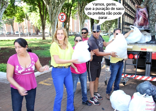 O clic é deste sábado, durante o recolhimento de doações para a Campanha do Agasalho do Provopar. A prefeita Regina Dubay deu uma mãozinha e ajudou na hora de carregar os mantimentos no caminhão que foi à praça São José. Segundo o Provopar, foram arrecadadas cerca de 20 toneladas de roupas.