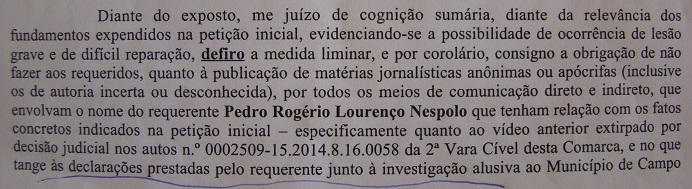 Se o pedido não aparece na ação, a liminar concedida pela 1.a Vara Cível deixa a entender essa restrição à imprensa.