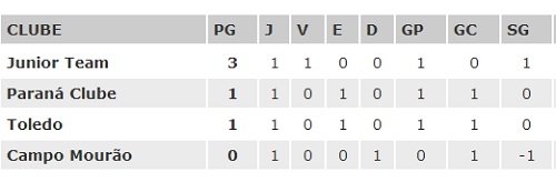 O Sport estreou com derrota na segunda fase do Paranaense Sub-18. O time foi a Londrina e perdeu par ao Junior Team por 1 a 0. Como o outro jogo do grupo terminou empatado - Toledo 1 x 1 Paraná -, o "leãozinho" amarga a última posição, só que ainda restam cinco rodadas para definição dos semifinalistas. O próximo adversário é o Toledo, dia 14, no RB. Os toledenses foram impiedosos com a gente na primeira fase, mas nunca é tarde pra uma vingancinha...