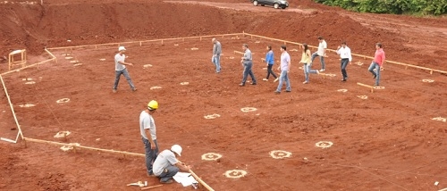 Engenheiro Beltrão - O prefeito Elias Lima levou os secretários municipais para uma "visita coletiva" às obras do futuro Parque de Exposições. Por enquanto, os operários estão fazendo a fundação da arena. A primeira etapa das obras terá um custo de R$ 604 mil e deve ser concluída em um ano.
