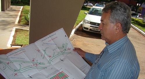 Saiu o projeto para a instalação de semáforo no trevo de entrada do Lar Paraná. Foi feito por empresa contratada pela prefeitura. Olha aí o diretor de Trânsito, Nelson Casarolli, mostrando o "danado". O projeto vai agora para análise do Dnit. Se for aprovado, a prefeitura manda licitar a instalação. Se o Dnit pedir adequações, volta para a empresa que fez o projeto. Portanto, tá saindo, tá saindo...