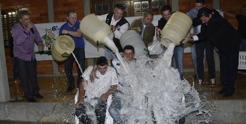 Pra encerrar a festa, aconteceu o "banho de leite". Repare que até o prefeito Beto Costa participou da folia. Ah, que ganho de água gelada, que nada!