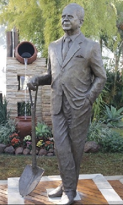 Já identificou de quem é a estátua? É do presidente da Coamo, José Aroldo Gallassini. Foi inaugurada neste sábado, na Arcam de Campo Mourão. Gallassini, o verdadeiro, foi pego de surpresa com a novidade, que faz parte das comemorações pelos 40 anos da associação dos funcionários da cooperativa. A estátua parece de bronze, mas é de um material tipo acrílico.