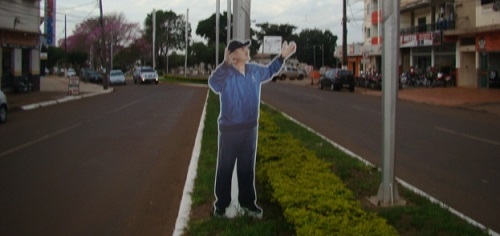 Olha só o que foi aparecer em Campo Mourão! Um "boneco" em tamanho real do ex-técnico da seleção brasileira, Luiz Felipe Scolari. Isso está no canteiro central no prolongamento da av. Capitão Índio Bandeira. Felipão está amarrado pelo pescoço numo poste. Pelo gesto, parece implorar por ajuda. Ah, vá ver tá implorando por um empreguinho de técnico do Sport ou do América do seu Enoque...