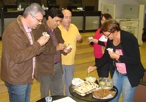 O que é isso? Vereadores fazendo lanche em pleno plenário da Câmara? Foi nesta segunda-feira, antes da sessão começar. A comida, no caso, é "cevapi", típica da Croácia. Ela apareceu ali levada pela vereadora Professora Vilma e pelo assessor Mateus Gozzer, que é estudante de gastronomia e preparou a iguaria. E por que isso? Porque quinta-feira tem Brasil e Croácia na abertura da Copa do Mundo. Ai-aiai-aiai! Será que vai ter sessão na semana dos jogos contra México e Camarões?...