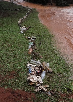 A foto de Felipe Duarte, sábado, mostra quando a chuvarada fez o lago do Parque do Lago transbordar e invadir até parte da pista de caminhadas. Portanto, a água a gente sabe que veio do céu. Agora, cá pra nós: e esse monte de lixo que a água trouxe, é só impressão ou é mesmo fruto do tal do homo sapiens?...
