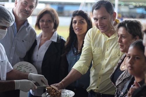 Olha aí o prefeito anfitrião, Nei Calori, na hora da "foto oficial" do "servimento".