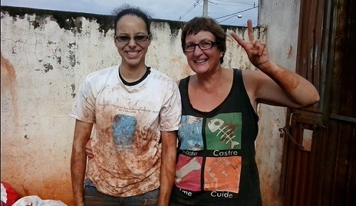 Olha aí a vereadora Elvira Schen (à dir.) toda suja de lama depois de mais um dia de trabalho no abrigo de cães da "Pais". Foi ela mesmo quem postou a foto no Facebook, junto com um desabafo sobre as pessoas que criticam a Ong (Protetores dos Animais Independentes) por não recolher mais cachorros. "Será que estamos felizes de ver e conviver com tantos problemas?", indagou.