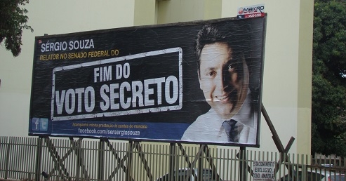 O suplente de senador Sérgio Souza espalhou outdoors com "prestação de contas" do período em assumiu no lugar de Gleisi Hoffmann. Esse aí fica na av. Manoel Mendes de Camargo, centro de Campo Mourão. O problema é que ele não está mais no Senado e é pré-candidato a deputado federal. Se fose candidato a vereador, Souza teria problemas, mas parece que lá em cima as leis são diferentes...