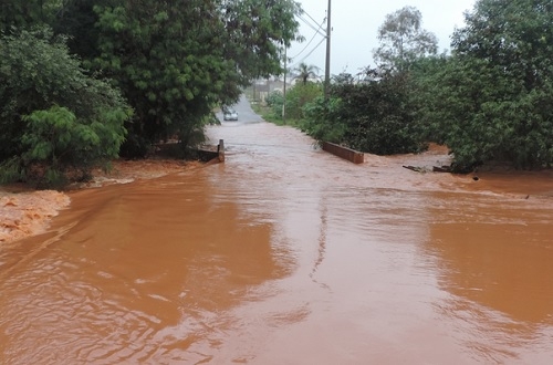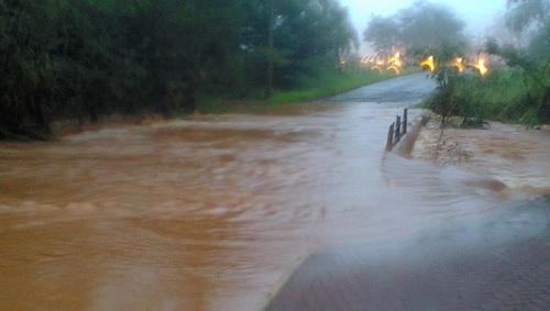"Depois da chuva de sexta-feira, olha como ficou a ponte do Bosque, na estrada do Barreiro das Frutas, na manhã deste sábado. Foi preciso dar a volta e ir para a cidade pelo anel viário". Kátia Mello