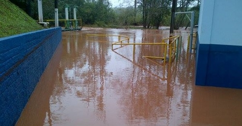 A chuvarada desta sexta-feira alagou até a estação de tratamento da Sanepar, no Lar Paraná. O Rio do Campo cobriu os motores durante a madrugada e eles tiveram que ser desligados, ou seja, o fornecimento de água foi interrompido. A foto foi feita pelo chefe regional da Sanepar, Edson Lima. Caaaaaaaaalma, São Pedro!...