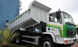 O prefeito Gilson Cassol (Barbosa Ferraz) fez pose ao lado caminhão do PAC 2, enquanto Nei Calori (Mamborê) não resistiu e até deu uma "guiada" no trucado.